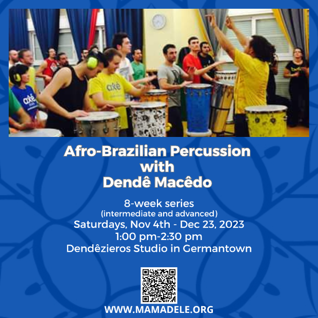 Join master percussionist Dendê Macêdo for the next edition of this multi-level class in Afro-Brazilian percussion.